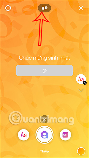 Chuyển sang giao diện tùy chọn đăng Story, bạn nhấn vào biểu tượng hình người để chuyển sang đăng thiệp lên Story. Lúc này người dùng sẽ thấy giao diện thiệp để bạn lựa chọn, nhấn vào biểu tượng xúc sắc ở trên để thay đổi chủ đề thiệp.