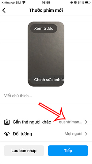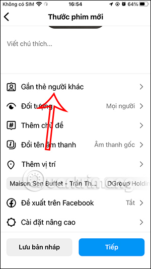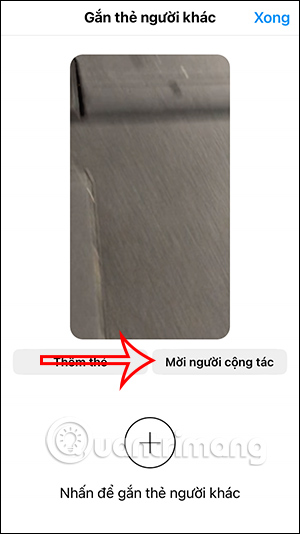 Tiếp đến trong giao diện tùy chỉnh đăng video Reels Instagram, người dùng nhấn vào mục Gắn thẻ người khác. Hiển thị giao diện tùy chỉnh tùy chọn gắn thẻ vào video Reels, chúng ta nhấn vào nút Mời người cộng tác.