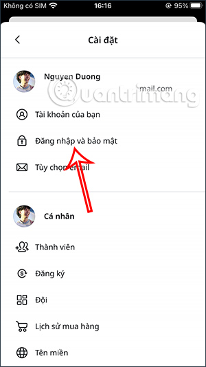 Chuyển sang giao diện các mục thiết lập bạn cũng nhấn chọn vào mục Đăng nhập và bảo mật.