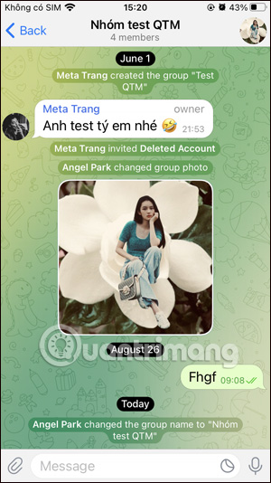 Như vậy tên nhóm Telegram đã được thay đổi. Người đổi tên nhóm Telegram sẽ được thông báo trong nhóm Telegram kèm với tên nhóm mới đã được thay đổi.
