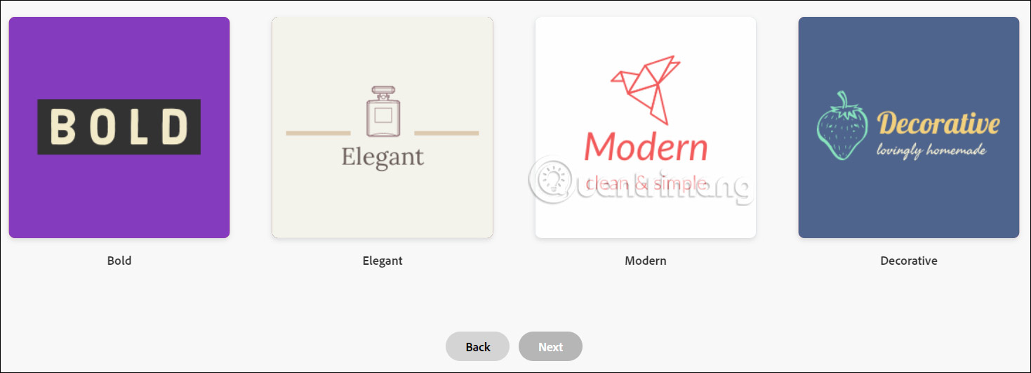 Tiếp đến chuyển sang giao diện mới, người dùng lựa chọn kiểu thiết kế logo mà mình thích.