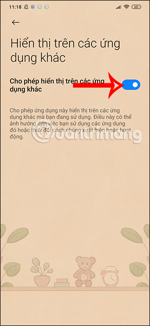 Khi đó bạn hãy kiểm tra xem đã cho phép Zalo hiển thị trên ứng dụng khác chưa khi mở bong bóng chat Zalo.