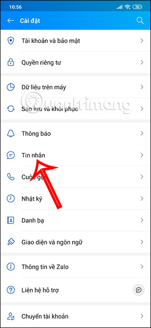 Trong giao diện các thiết lập cho Zalo bạn nhấn vào mục Tin nhắn để điều chỉnh.