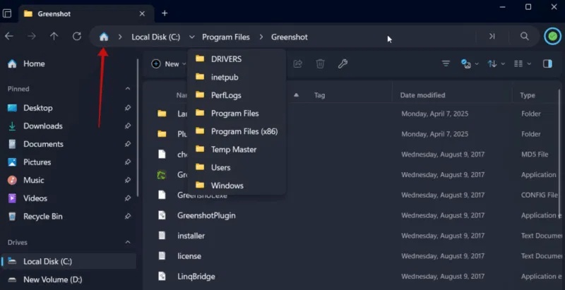 Với bố cục kiểu breadcrumb, Omnibar mới giúp bạn dễ dàng xem chính xác vị trí của mình trong hệ thống file. Mỗi đường dẫn đều có thể mở rộng, hiển thị các thư mục con để điều hướng nhanh hơn. Ở phía bên trái, biểu tượng Home cung cấp quyền truy cập nhanh vào các mục được ghim và những thư mục thường dùng.