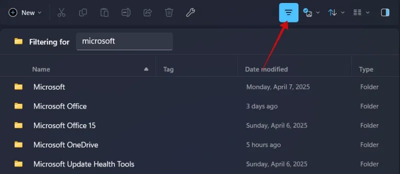 Ngoài ra còn có tùy chọn lọc qua các file và thư mục. Bạn sẽ tìm thấy biểu tượng cho tùy chọn này bên dưới Omnibar ở bên phải.