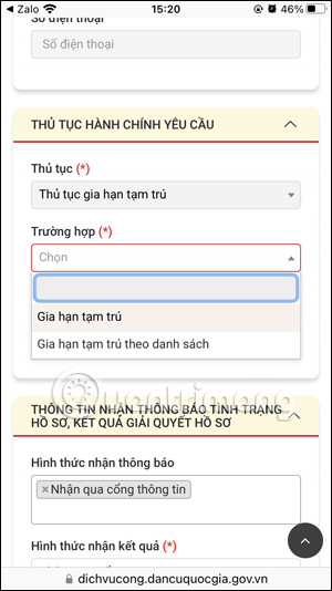 Hướng dẫn gia hạn tạm trú trên Zalo