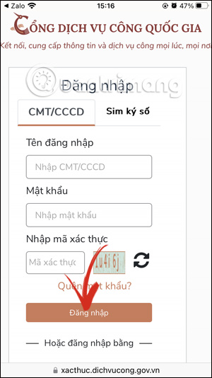 Tiếp đến chúng ta sẽ lựa chọn đăng nhập bằng Cổng dịch vụ công quốc gia.