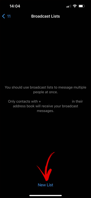 Tại giao diện các tin nhắn trên WhatsApp, bạn nhấn vào mục Broadcast Lists để tiến hành tạo danh sách nhận tin nhắn. Tiếp đến chúng ta nhấn vào New List để tạo danh sách liên hệ nhận tin nhắn.