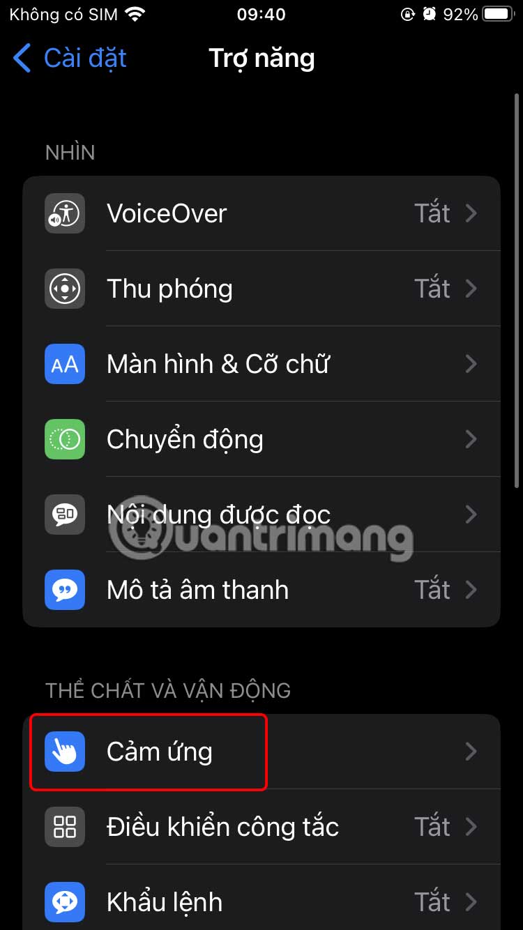 Lắc để hoàn tác trên iPhone là phương thức cơ bản và có trên tất cả phiên bản iOS. Tính năng này mặc định luôn được kích hoạt trong iPhone để bạn sử dụng. Bạn chỉ cần truy cập vào Cài đặt > Trợ năng > Cảm ứng rồi kiểm tra tính năng Lắc để hoàn tác đã bật hay chưa.