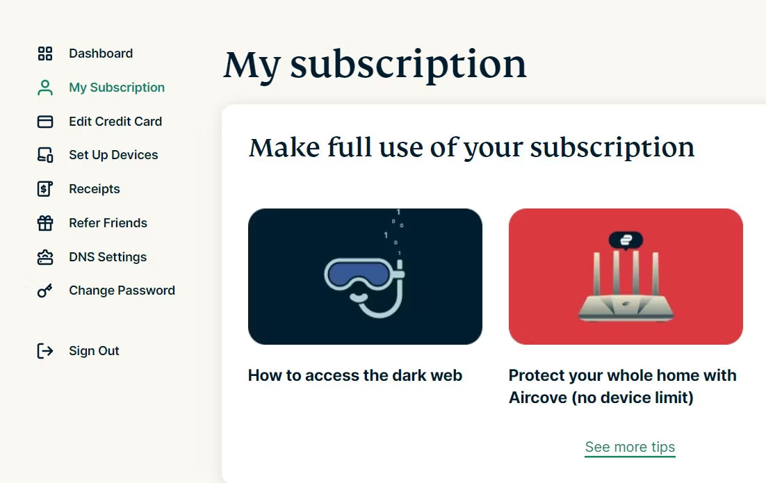 2. Khi bạn đã đăng nhập, hãy chọn My Subscription từ bên trái.