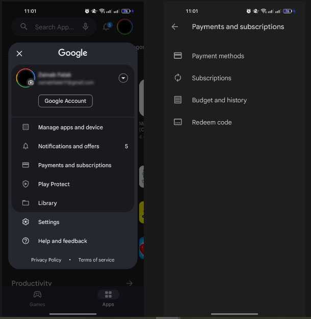 3. Nhấp vào Payments and Subscriptions nếu bạn đang sử dụng Play Store và Subscriptions nếu bạn đang sử dụng App Store.