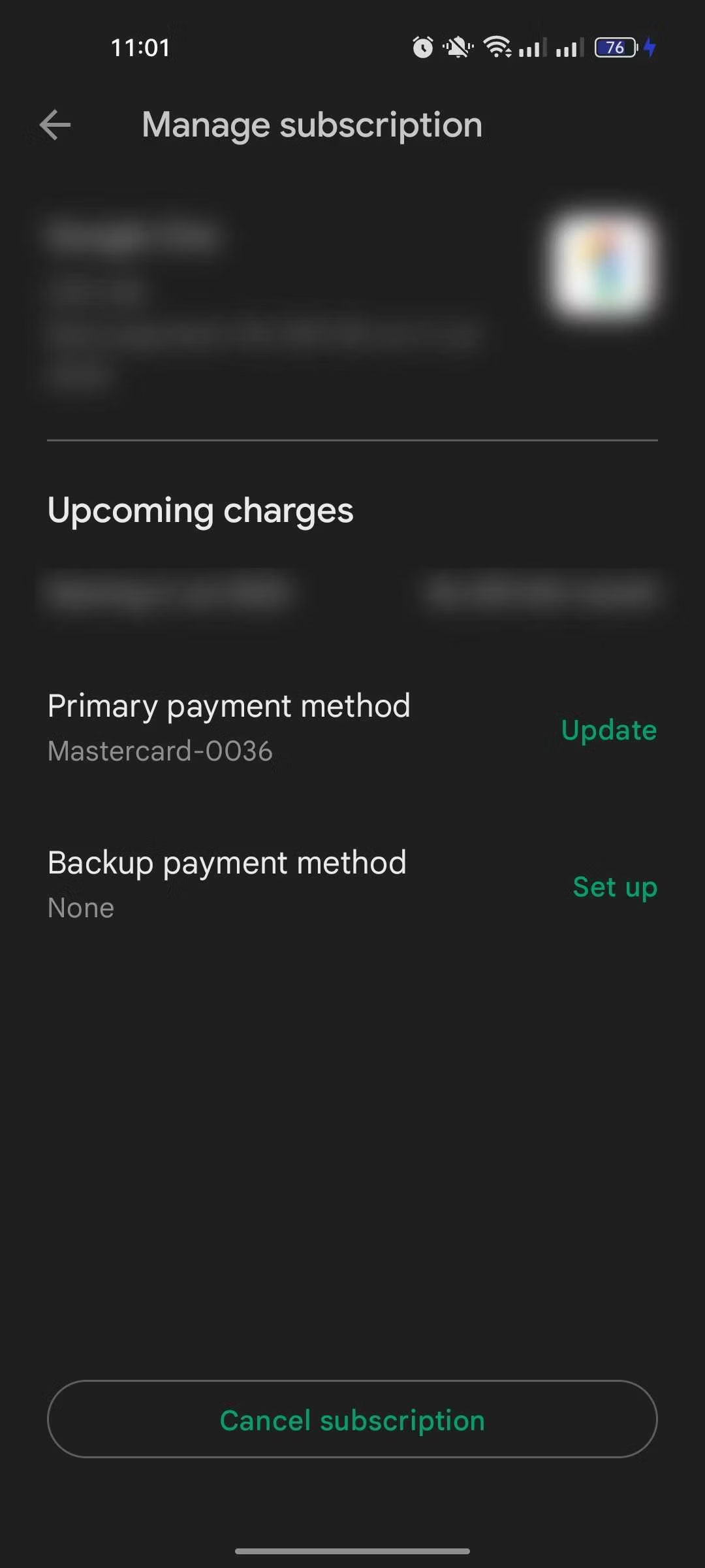 5. Chọn Cancel subscription và làm theo hướng dẫn trên màn hình để tiếp tục.