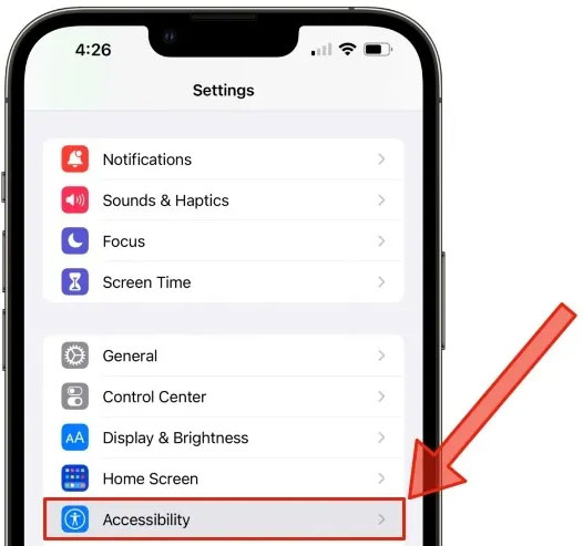 2. Cuộn xuống và chọn Accessibility từ menu.
