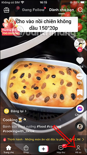 Tại giao diện trên TikTok người dùng nhấn vào biểu tượng cá nhân ở góc dưới cùng bên phải. Sau đó chuyển vào giao diện TikTok cá nhân, chúng ta nhấn vào biểu tượng 3 dấu gạch ngang ở góc phải trên cùng.