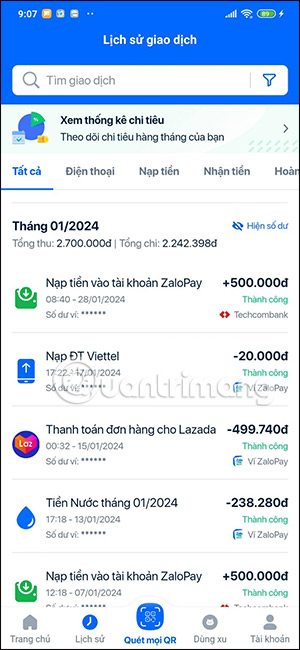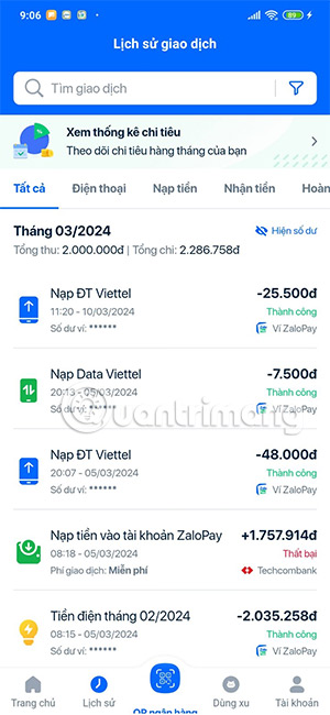 Hướng dẫn kiểm tra lịch sử giao dịch ZaloPay