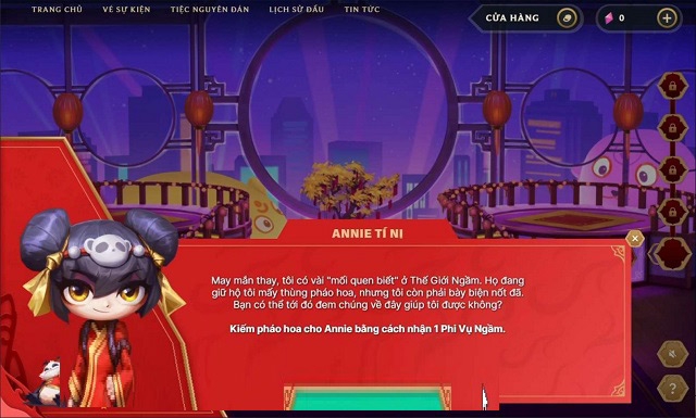 Cuối cùng hãy nhấn vào Kiếm Pháo Hoa cho Annie để nhận nhiệm vụ.