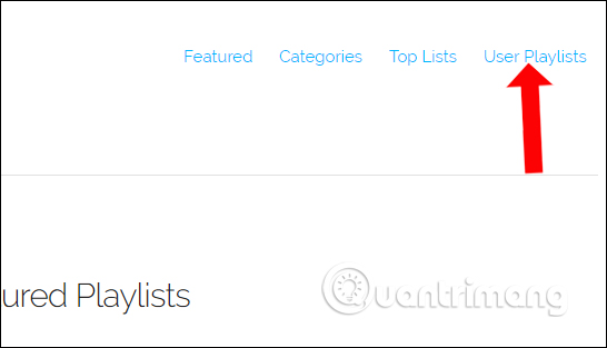 Tại giao diện nhấn chọn vào mục User Playlists ở góc trên cùng bên phải màn hình.