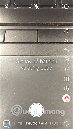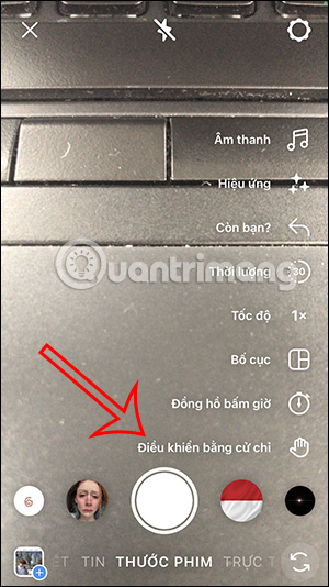Tại giao diện trên ứng dụng Instagram, người dùng nhấn vào biểu tượng dấu cộng để tiến hành quay video. Say đó bạn chuyển vào giao diện quay video rồi tìm tới mục Thước phim. Lúc này người dùng sẽ thấy thiết lập Điều khiển bằng cử chỉ để chúng ta nhấn chọn sử dụng.