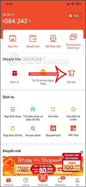 Cách rút tiền từ ShopeePay về ngân hàng liên kết