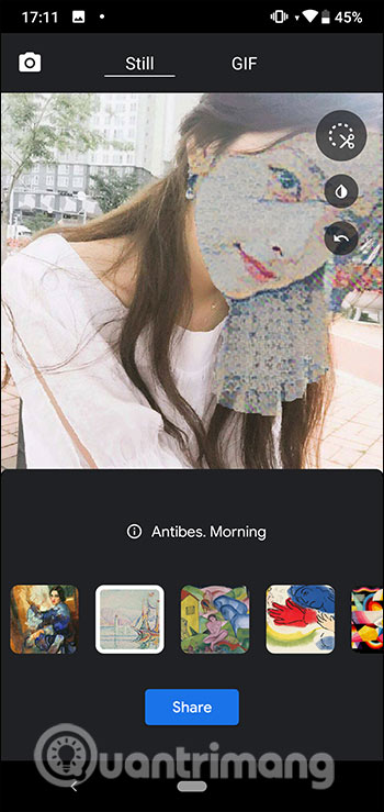 Sau khi đã chỉnh sửa xong thì bạn nhấn Share để tải và chia sẻ ảnh.