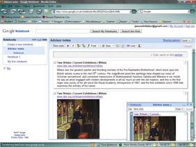2. Các tải xuống hiện thời chỉ hỗ trợ Firefox trong Windows Vista, nhưng hỗ trợ cả Firefox và IE trong XP. Khi đã được cài đặt, cách đơn giản nhất để theo dõi nghiên cứu trực tuyến là nhấn phải tại một trang và chọn “Note this (Google Notebook)” trên trình đơn thả xuống. Một ứng dụng nhỏ sẽ được mở ra tại phía dưới màn hình.