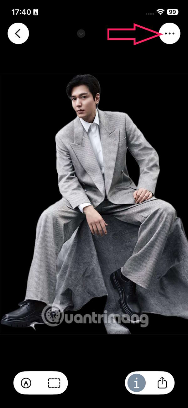 Trong giao diện xem hình ảnh, bạn nhấn vào biểu tượng 3 chấm ở góc phải trên cùng giao diện. Sau đó người dùng nhấn chọn vào mục Xóa nền ở cuối danh sách để thực hiện.