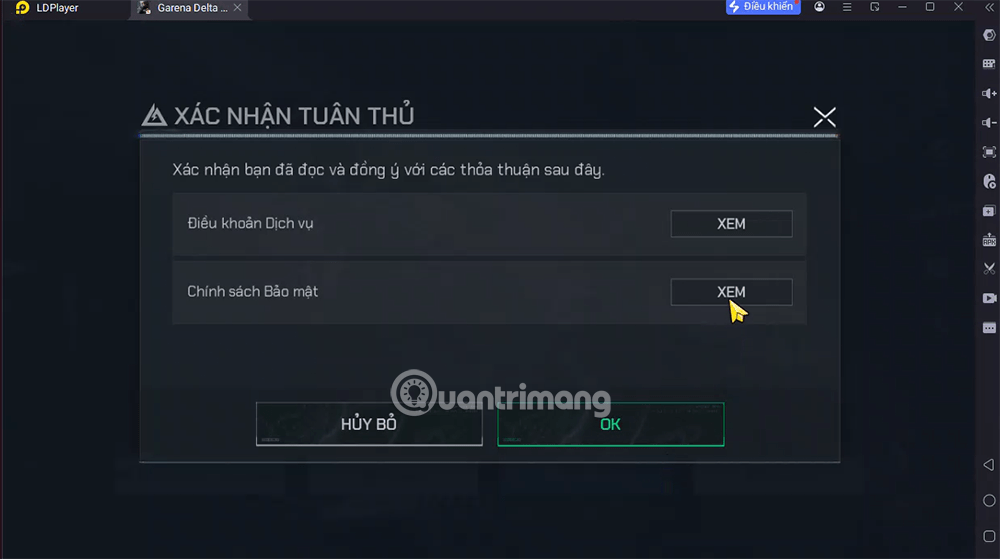 Bước 6: Chọn OK để đồng ý với điều khoản và chính sách bảo mật của game.