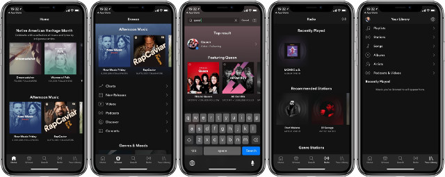 Có 5 chức năng cốt lõi mà Spotify mang đến cho chúng ta, nhìn chung cũng giống hầu hết các ứng dụng nghe nhạc khác nên sẽ rất dễ làm quen ngay từ đầu: