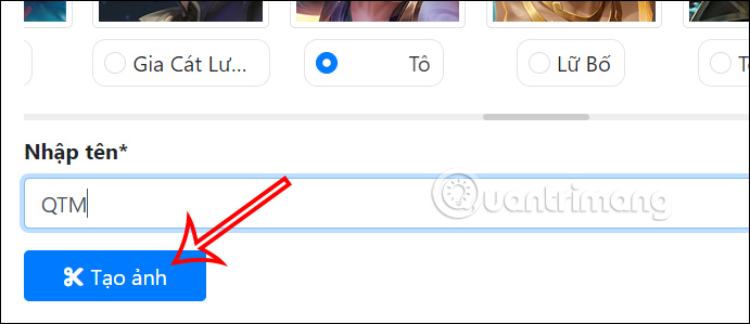 Tiếp đến người dùng nhập tên muốn hiển thị trong ảnh đại diện rồi nhấn vào nút Tạo ảnh ở bên dưới.