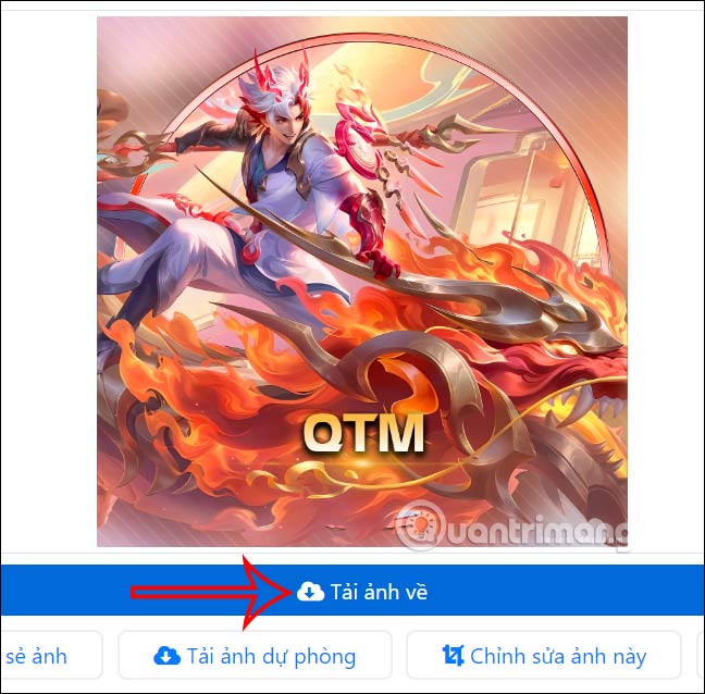 Ngay lập tức bạn sẽ nhìn thấy ảnh đại diện game Vương Giả Vinh Diệu mà mình đã chọn tưởng. Bên dưới sẽ có tùy chọn để tải ảnh xuống, nhấn Tải ảnh về. Ngoài ra bạn cũng có thể chia sẻ hình ảnh này bằng cách nhấn chọn Chia sẻ ảnh để lấy link ảnh hoặc chia sẻ luôn lên Facebook của mình.