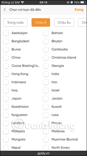 Chúng ta có thể tạo thêm những bản đồ du lịch khác, không chỉ trong mà còn những khu vực ngoài nước như Châu Á, Châu Âu,... Bạn cũng tích chọn vào những địa điểm nước ngoài mà mình đã đi và nhấn Xong để tiến hành tạo bản đồ.