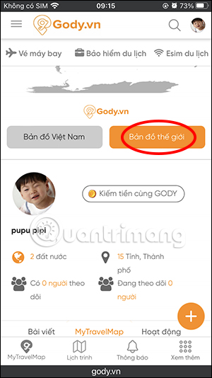Khi đó người dùng nhấn vào mục Bản đồ thế giới để xem bản đồ du lịch nước ngoài trên Gody.