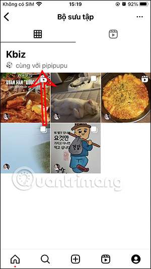 Lúc này người dùng sẽ nhìn thấy bộ sưu tập cộng tác trên Instagram. Nhấn vào bộ sưu tập cộng tác này người dùng sẽ thấy tên người cộng tác, kèm theo ảnh avatar tài khoản Instagram cộng tác ở mỗi bài lưu.