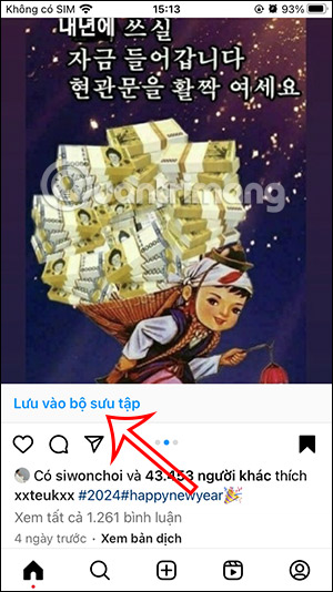 Tại giao diện trên Instagram bạn nhấn vào biểu tượng lưu để lưu lại bài đăng này. Tiếp đến bạn nhấn vào Lưu vào bộ sưu tập để tạo bộ sưu tập Instagram mới.