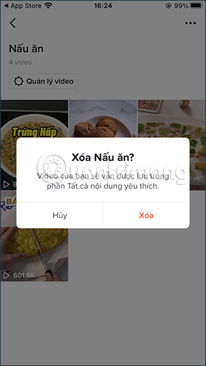 Hoặc bạn có thể xóa bộ sưu tập video TikTok nếu muốn.