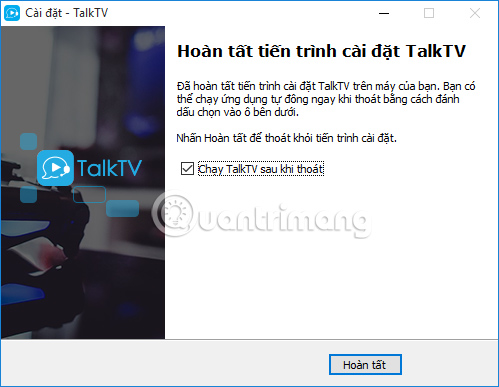 Chúng ta tiến hành cài đặt chương trình trên máy tính. Do giao diện của TalkTV là tiếng Việt nên rất dễ cài đặt nhé.