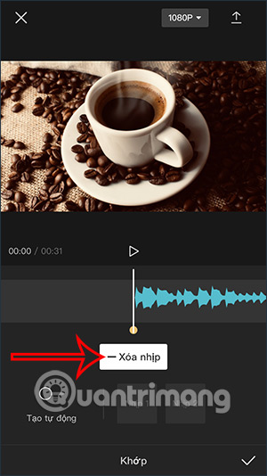 Chuyển sang giao diện tùy chỉnh, chúng ta sẽ nhấn vào thanh âm thanh rồi nhấn tiếp vào tính năng Khớp để tìm beat nhạc. Lúc này bạn sẽ nhìn thấy công cụ để tìm beat nhạc. Bạn có thể tự tìm beat nhạc bằng cách nghe nhạc, hoặc nhấn Tạo tự động để ứng dụng tìm beat nhạc.