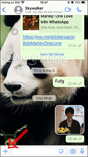 Tại giao diện trên ứng dụng Whatsapp bạn nhấn vào biểu tượng dấu cộng để gửi video, hoặc bạn nhấn vào biểu tượng camera để tiến hành quay video trực tiếp gửi trên Whatsapp.