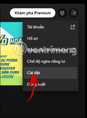 Tại giao diện trên ứng dụng Spotify, bạn nhấn vào ảnh đại diện cá nhân rồi chọn tiếp vào mục Cài đặt.