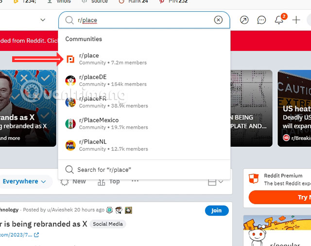 Kế đến tìm từ khóa r/place và chọn kết quả như ở dưới hình.