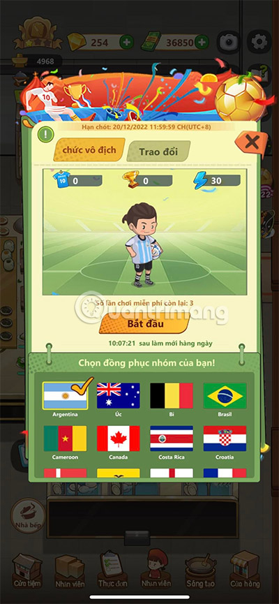 Bước 2: Chọn một trong những trang phục của các đội bóng và chọn Bắt Đầu.