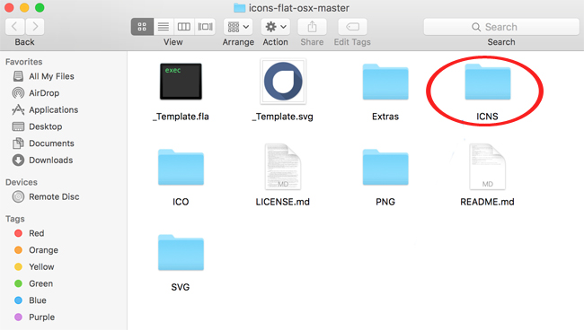 Tiếp theo, chúng ta tiến hành giải nén 2 tập tin bên trên sau khi tải về máy. Mở thư mục ICNS chứa icons để thay thế.