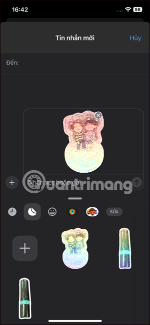 Lúc này bạn sẽ thấy sticker có hiệu ứng hiển thị trong khung gửi tin nhắn trên iPhone. Chúng ta nhập nội dung tin nhắn và nội dung khác nếu cần, rồi tiến hành gửi tin nhắn như bình thường.
