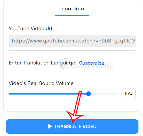 Tiếp đến bạn nhấn chọn vào Translate Video để tiến hành tạo thuyết minh cho video. Chúng ta chờ vài phút và sẽ nhìn thấy ngay video với thuyết minh ở bên cạnh. Để nghe rõ hơn thì bạn có thể điều chỉnh âm lượng gốc tại Video's Real Sound Volume.