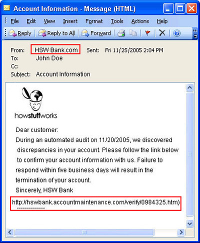 HTML. Một số email lừa đảo trông như vô hại nhưng lại chứa các địa chỉ HTML ẩn cùng với các đường dẫn giúp email này vượt qua được cách chương trình chống spam.