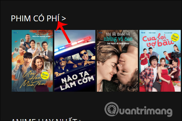 Giao diện của Fim+ phân chia các bộ phim theo gói Fim+ và gói trả phí. Khi tìm kiếm nội dung bạn cần đề ý dòng chữ màu xanh ở từng mục phim. Tìm xuống mục Phim có phí.