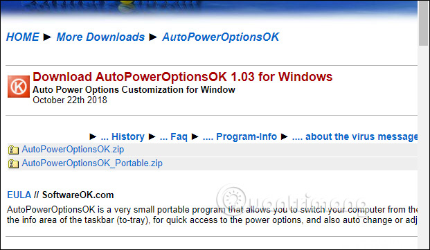 Bạn truy cập vào link dưới đây để tải công cụ AutoPowerOptionsOK. Sẽ có bản protable để bản tải xuống.
