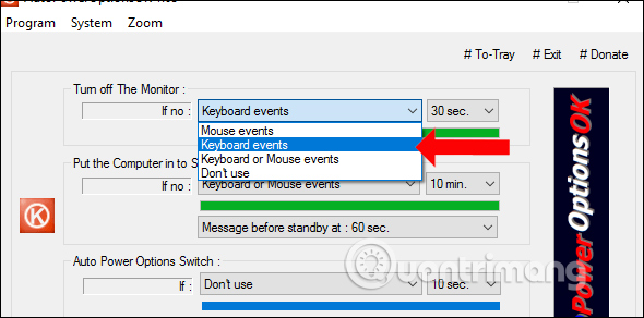 Để tiết kiệm pin laptop chúng ta có thể sử dụng ngay những thiết lập của hệ thống tại phần Power Options, chẳng hạn đưa máy về chế độ Sleep, tắt màn hình laptop,… Công cụ AutoPowerOptionsOK về cơ bản có tính năng tiết kiệm pin cho laptop, nhưng có nhiều hơn các tùy chọn như tự động chuyển đổi giữa các chế độ tiết kiệm pin khác nhau trên laptop.