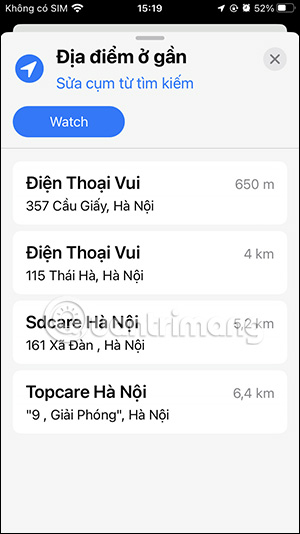Chúng ta nhấn vào địa điểm bất kỳ để xem thông tin cửa hàng sửa chữa đó. Lúc này bạn sẽ có được thông tin chi tiết của cửa hàng sửa chữa iPhone hay thiết bị khác của Apple do bạn lựa chọn.