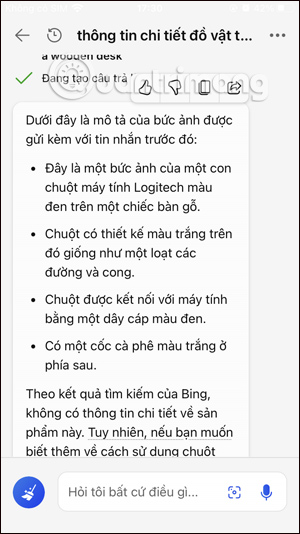 Sau đó Bing Chat tiến hành phân tích hình ảnh và thông tin có thể đọc được trong hình ảnh mà bạn tải lên. Cuối cùng chúng ta sẽ thấy được thông tin bạn cần từ hình ảnh mà đã trò chuyện với Bing Chat.